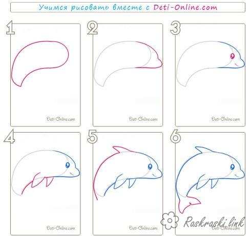 как нарисовать дельфина. Раскраска дельфин как нарисовать завантажити бесплатно онлайн