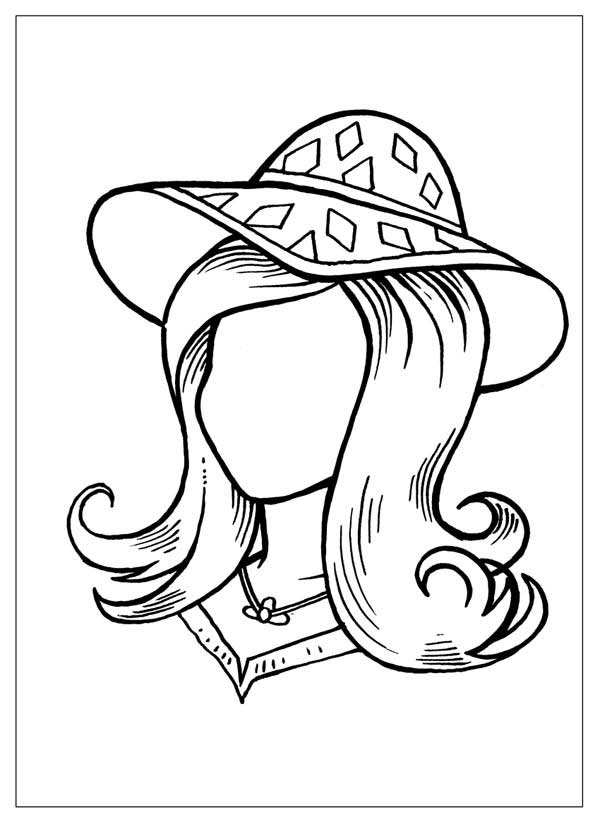 Обличчя дівчини. Раскраска розмальовки для дітей, розфарбуй особа, домалюй сам, дівчина в капелюсі, домалюй, обличчя завантажити бесплатно онлайн
