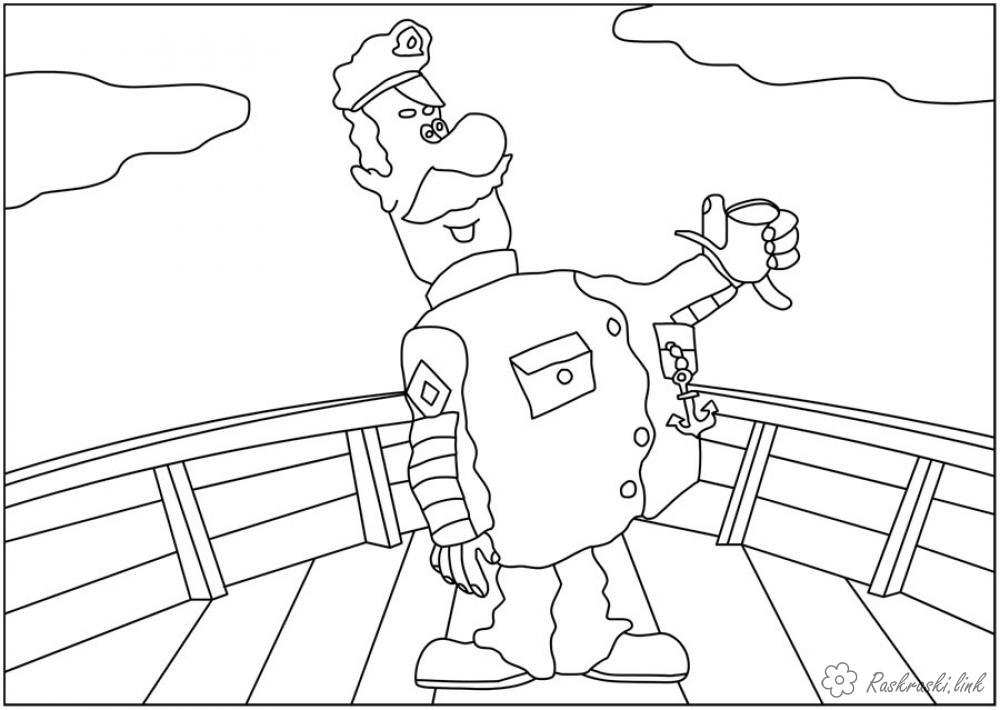 Капітан Врунгель в море. Раскраска Радянський мультфільм, капітан Врунгель, пригода, море, борт завантажити бесплатно онлайн