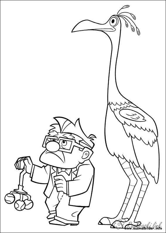 Карл Фредріксен і птиця. Раскраска розмальовки мультфільми, розмальовки мультфільм вгору, дідусь, Карл Фредріксен, птиця завантажити бесплатно онлайн