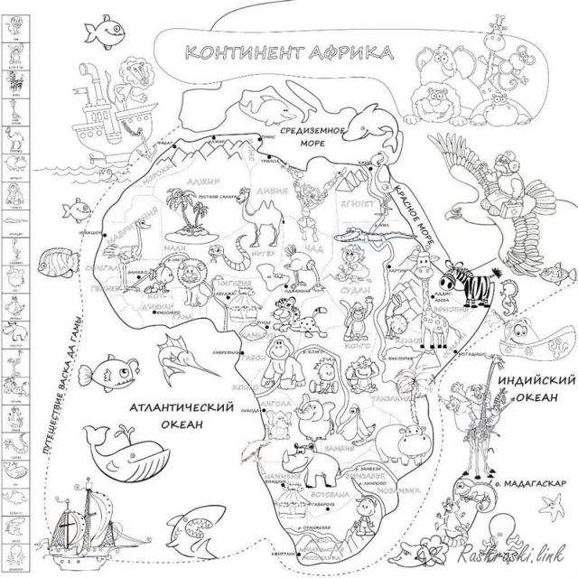 Карта Африки. Раскраска розмальовки для дітей, тварини, Африка, карта завантажити бесплатно онлайн