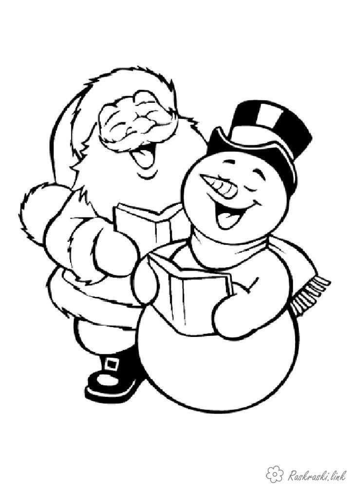дід мороз і сніговик. Раскраска розмальовки дітям, чорно-білі картинки, новий рік, свято, зима, сніговик, дід мороз, читання віршів завантажити бесплатно онлайн