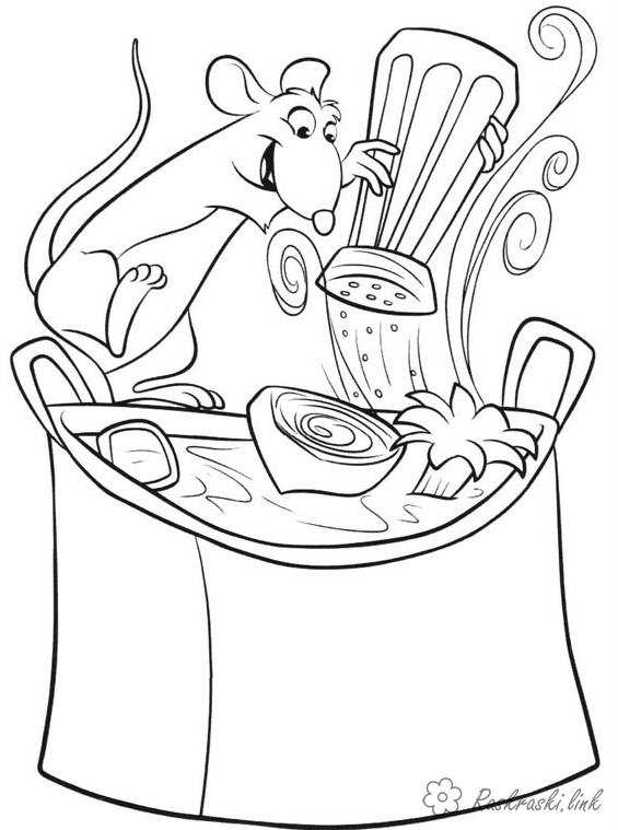 рататуй готує їсти. Раскраска рататуй, каструля, їжа завантажити бесплатно онлайн