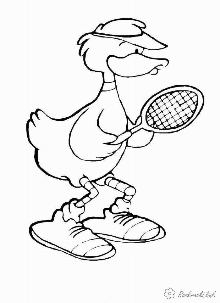 Качка тенісист. Раскраска Качка тенісист розфарбування, спортивні ігри розфарбування завантажити бесплатно онлайн