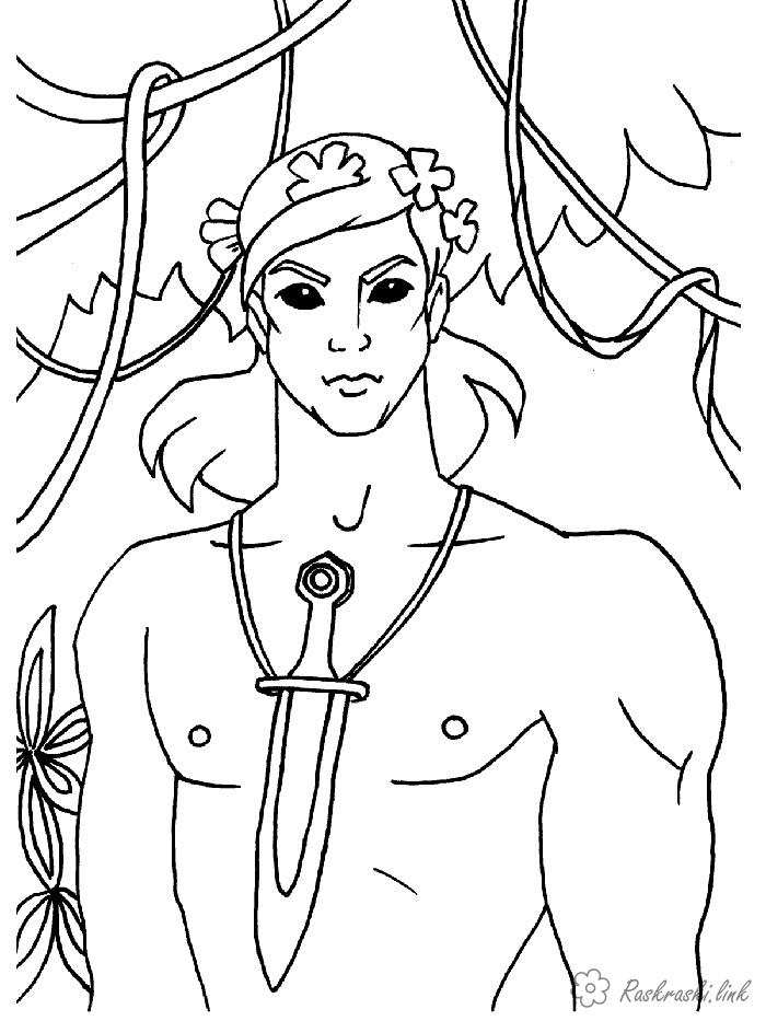 Мауглі. Раскраска Радянський мультфільм, мауглі, кинджал завантажити бесплатно онлайн