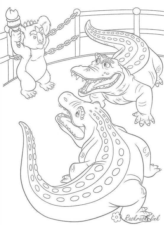 два крокодили і коала. Раскраска розмальовки, крокодили, рептилії, коала завантажити бесплатно онлайн