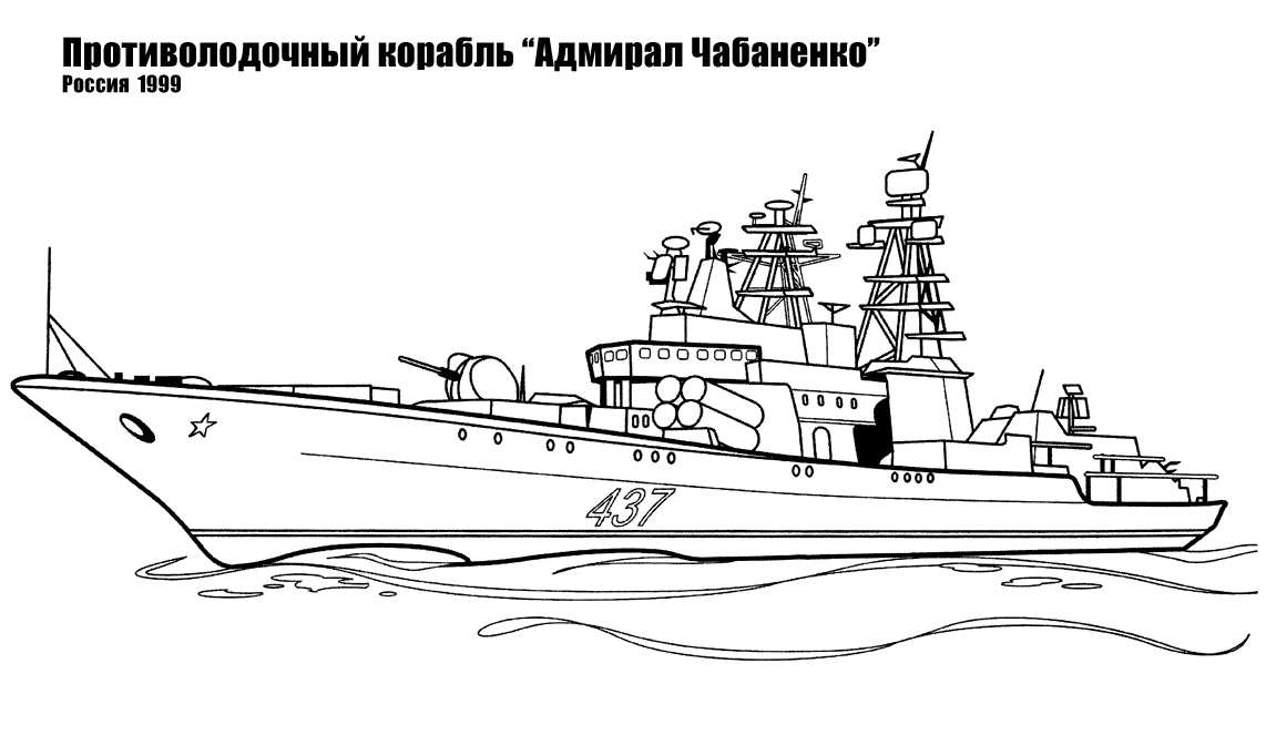 Протичовновий корабель . Раскраска Розмальовка, військовий корабель завантажити бесплатно онлайн