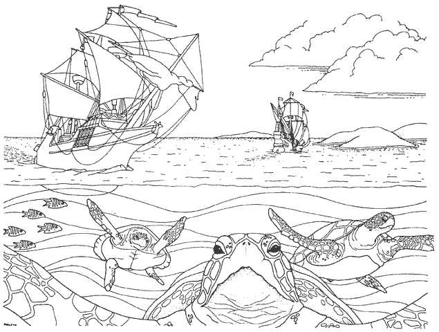 черепахи і кораблі. Раскраска природа підводний світ черепаха кораблі завантажити бесплатно онлайн