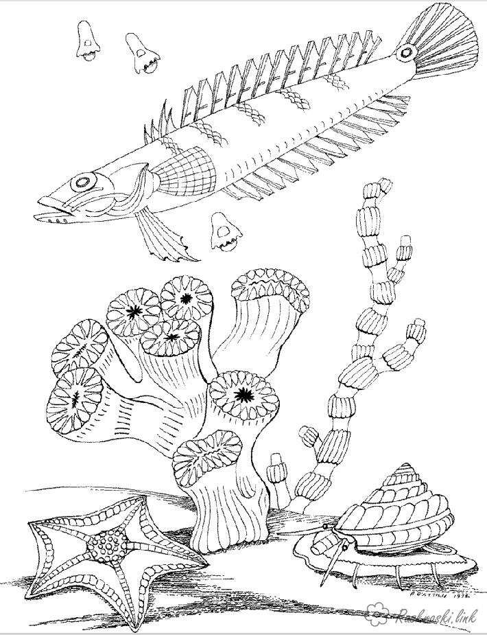 риба і корали. Раскраска природа корали риба підводний світ завантажити бесплатно онлайн