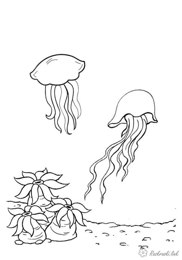 Розмальовка два медузи. Раскраска Медузи, корали завантажити бесплатно онлайн