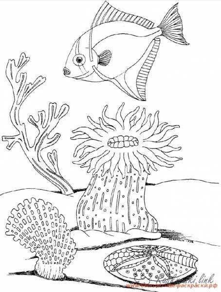 корали і рибка. Раскраска природа підводний світ корали рибка завантажити бесплатно онлайн