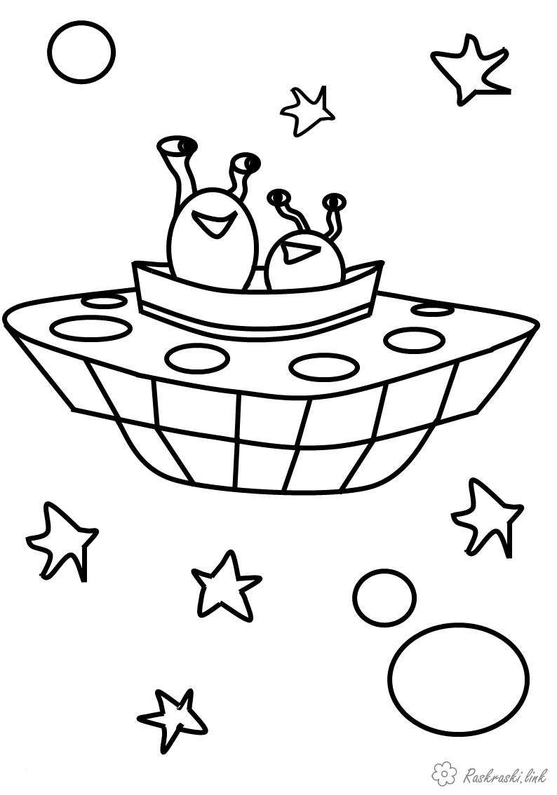 Інопланетяни в тарілці . Раскраска розфарбуй, НЛО завантажити бесплатно онлайн