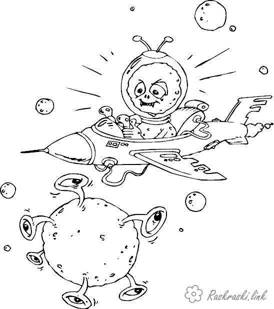раскараска Інопланетянин на ракеті. Раскраска розфарбування, космос, інопланетянин, розмальовки до дня космонавтики завантажити бесплатно онлайн
