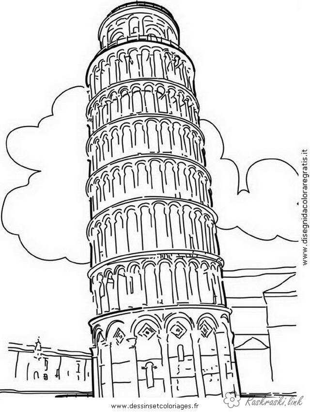Пізанська вежа. Раскраска Подорож Європа країна пізанська вежа завантажити бесплатно онлайн