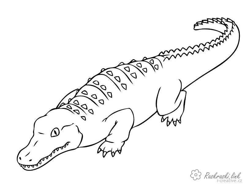 великий колючий крокодил. Раскраска розмальовки рептилії, крокодил завантажити бесплатно онлайн