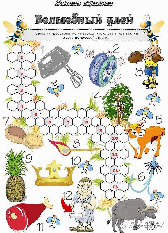 Кросворд Чарівний вулик. Раскраска кросворд для дітей завантажити бесплатно онлайн