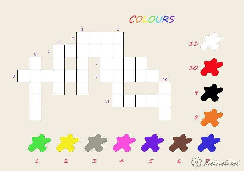 Кросворд Кольори англійською. Раскраска кросворд кольору, кросворд англійською мовою завантажити бесплатно онлайн