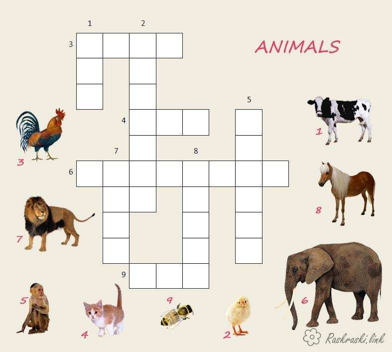 Тварини. Раскраска кросворд англійською мовою, кросворд тварини завантажити бесплатно онлайн