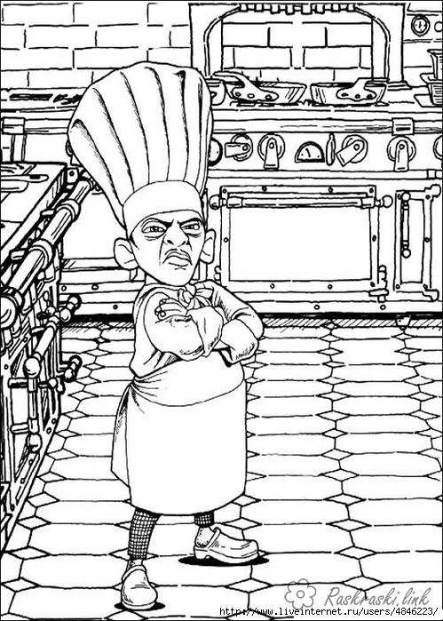 шеф повар. Раскраска шеф кухар на кухні завантажити бесплатно онлайн