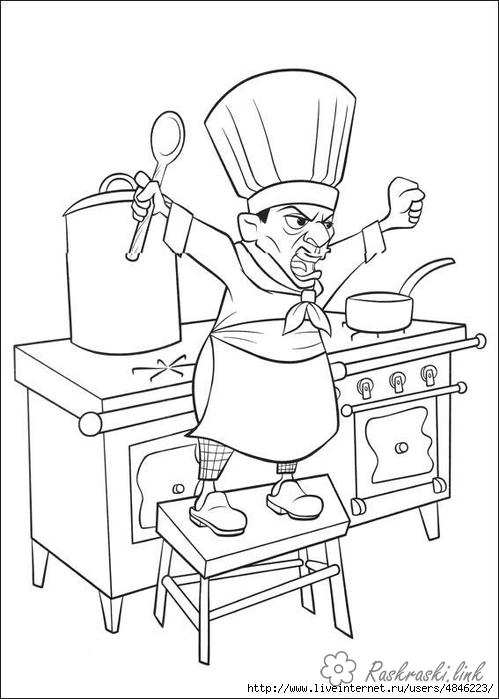 кухар кричить на кухні. Раскраска кухар, рататуй, посуд, розфарбування для дітей завантажити бесплатно онлайн