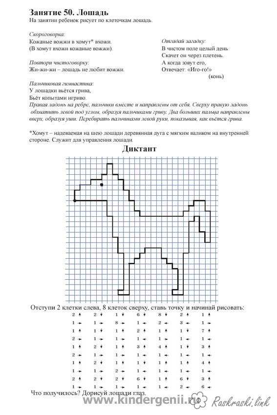 Графічний диктант "Кінь". Раскраска Графічний диктант, малюємо по клітинках кінь завантажити бесплатно онлайн