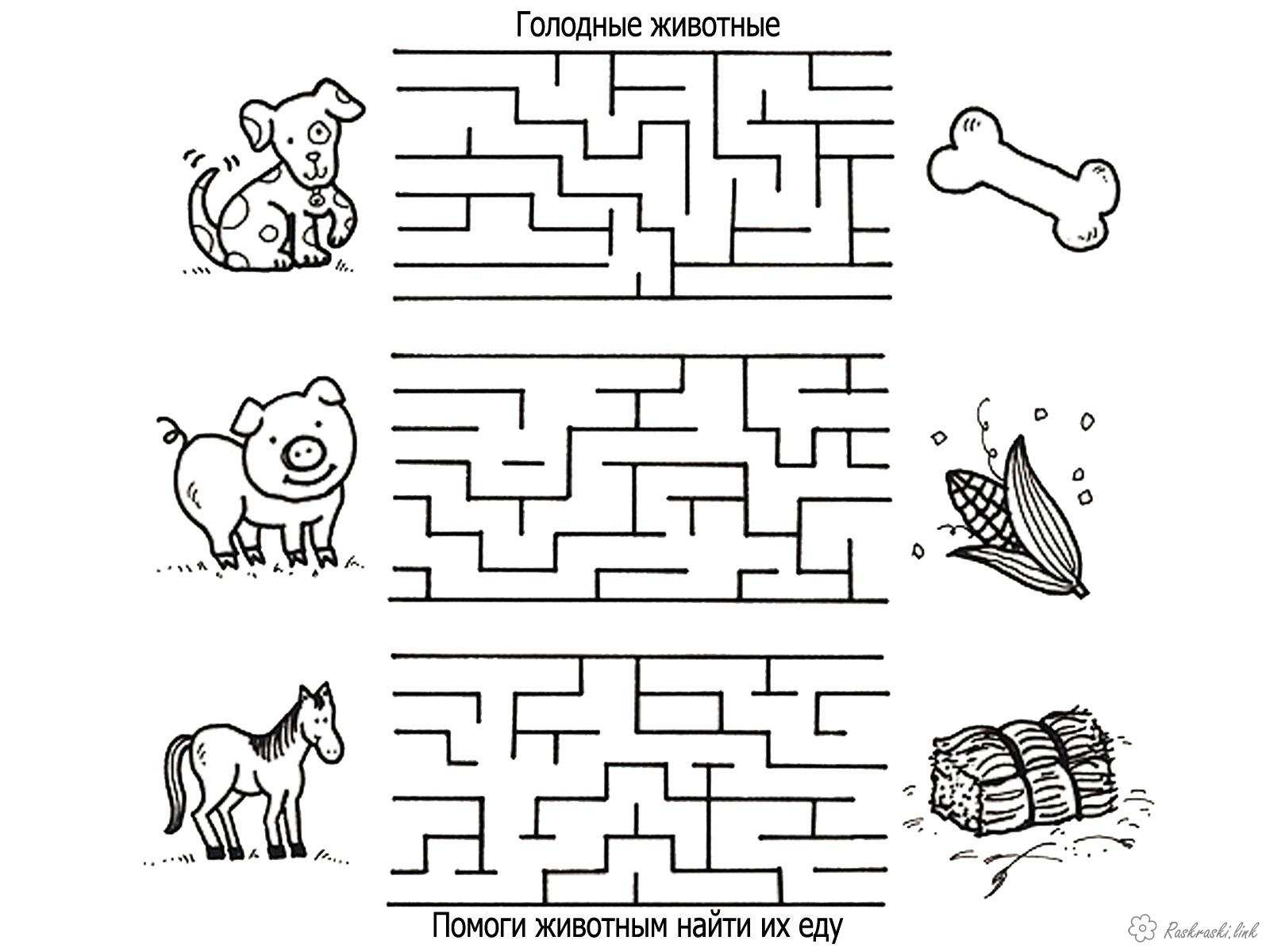 Пройди лабіринт і нагодуй тварин. Раскраска Лабіринт, нагодуй тварин, проведи тварин по лабіринту завантажити бесплатно онлайн