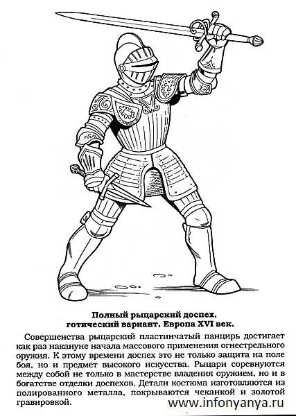 Лицар в обладунках. Раскраска розмальовки для дітей, подорожі, європа, лицар, чоловік завантажити бесплатно онлайн