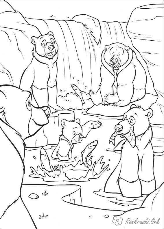 Ведмеді ловлять рибу. Раскраска розмальовки для дітей, природа, відпочинок на природі, тварини, ведмідь, риба завантажити бесплатно онлайн