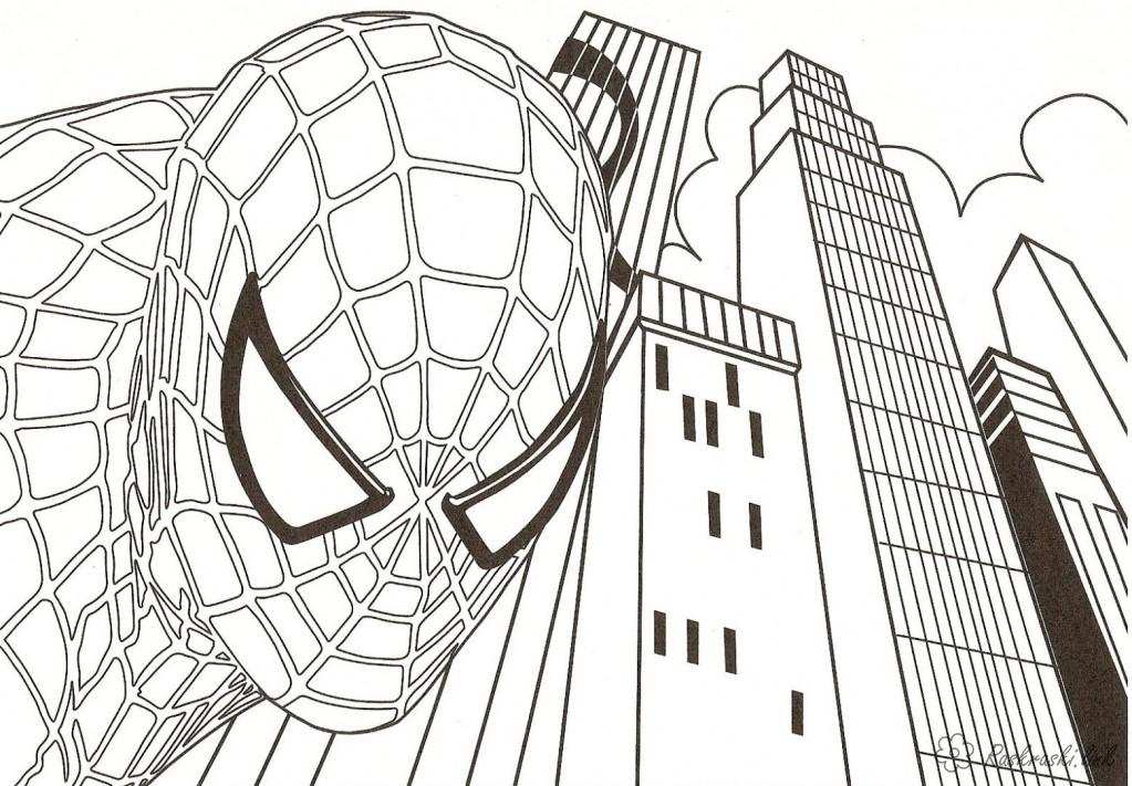 людина павук в місті. Раскраска розфарбування людина павук в місті, комікси завантажити бесплатно онлайн