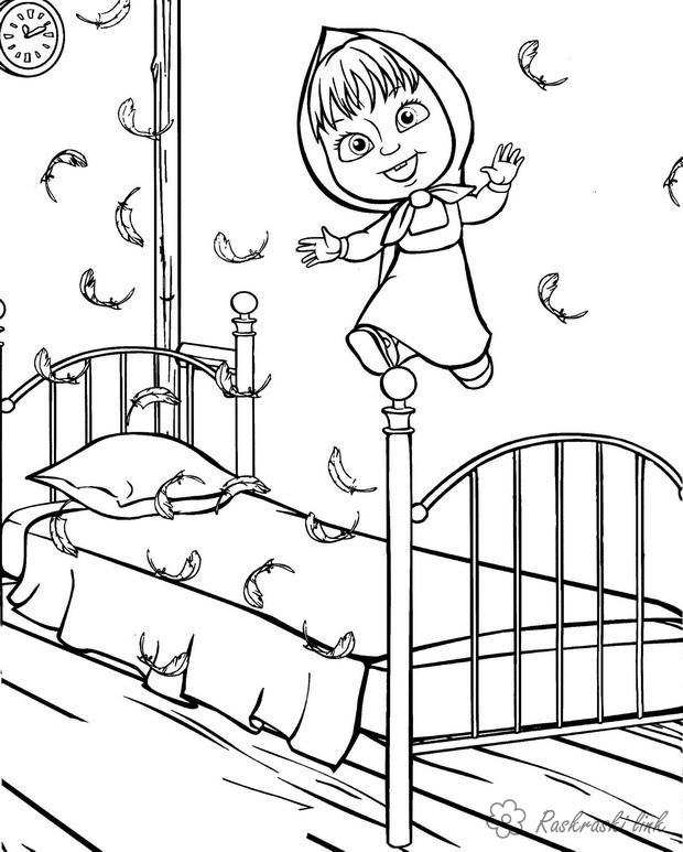 маша стрибає на ліжечку. Раскраска розфарбування маша і ведмідь, ліжечко, мультфільм завантажити бесплатно онлайн