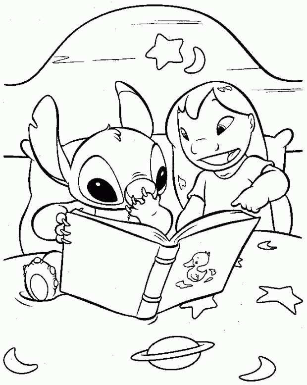 Ліло і Стіч читають казку. Раскраска Ліло і Стіч, книжка, ліжечко, казка завантажити бесплатно онлайн
