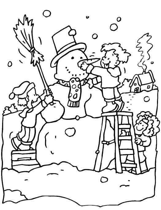 Діти ліплять сніговика. Раскраска розмальовки для дітей, явища природи, природа, сніг, сніговик, діти, хлопчик завантажити бесплатно онлайн