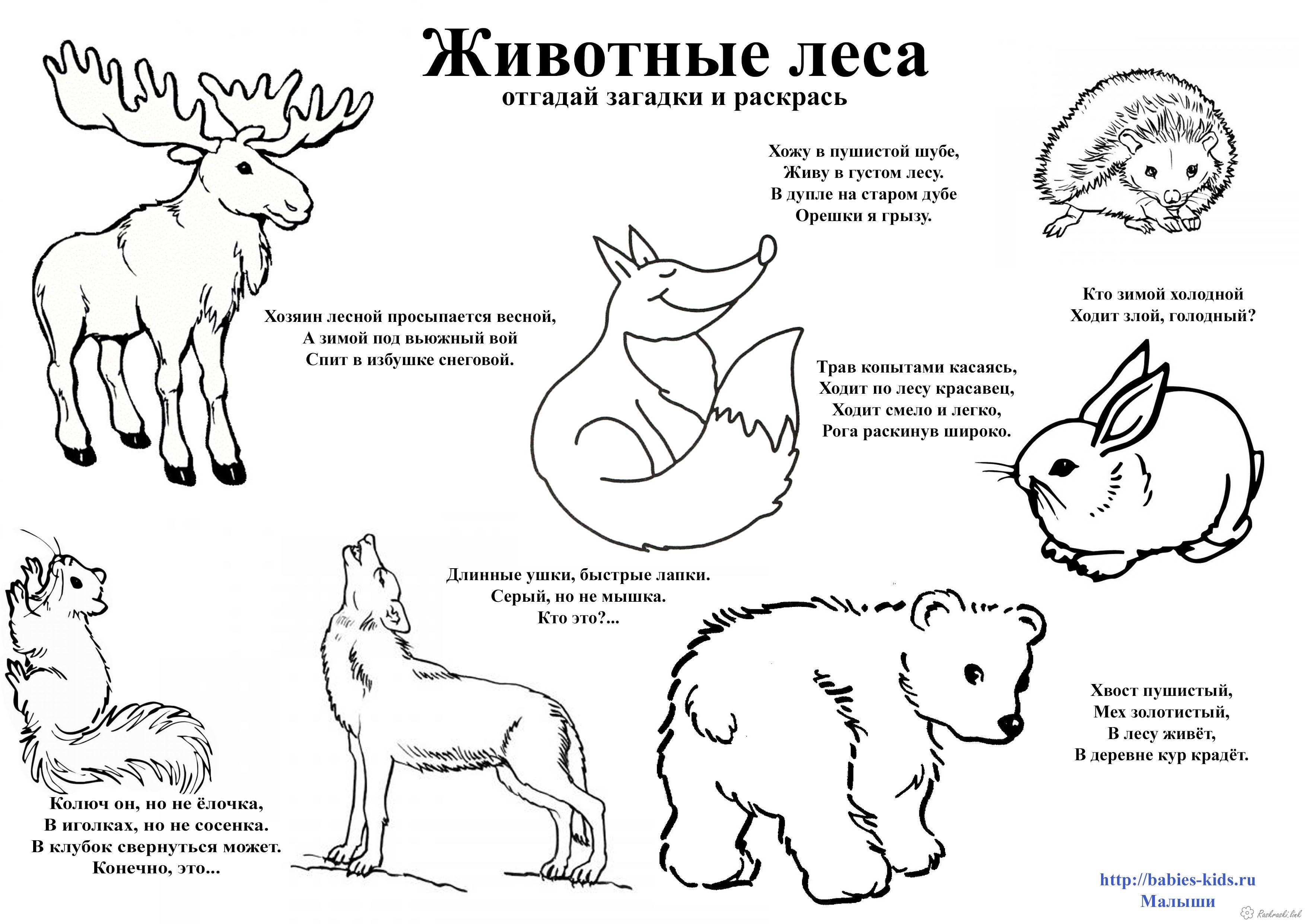 розфарбування для дітей "лісові тварини". Раскраска Дитяча розфарбування лісові тварини із загадками завантажити бесплатно онлайн