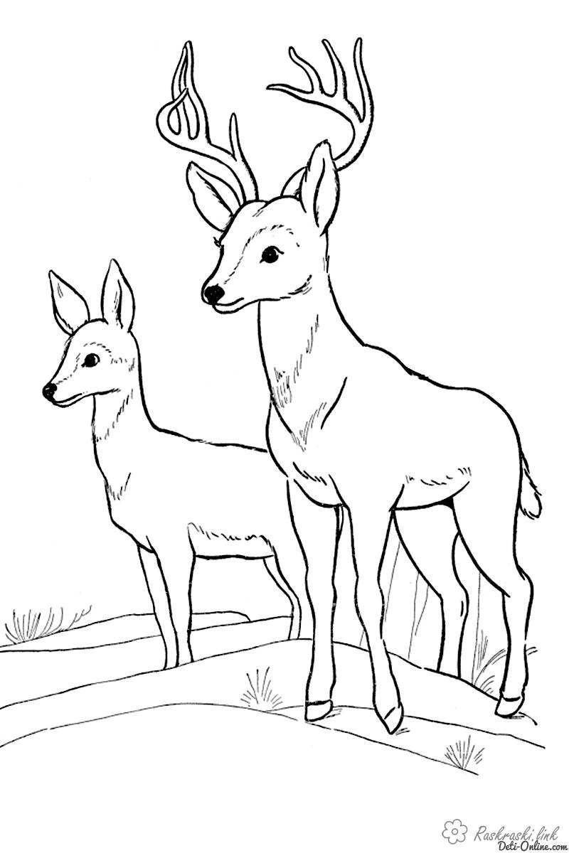 олені. Раскраска природа лісові тварини олень завантажити бесплатно онлайн