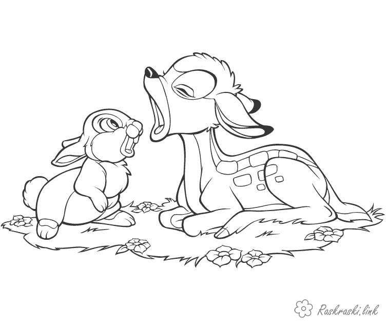 оленятко і зайченя. Раскраска розмальовки для дітей, оленятко і зайченя, тварини, лісові завантажити бесплатно онлайн
