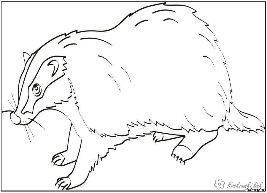 борсук. Раскраска природа лісові тварини борсук завантажити бесплатно онлайн