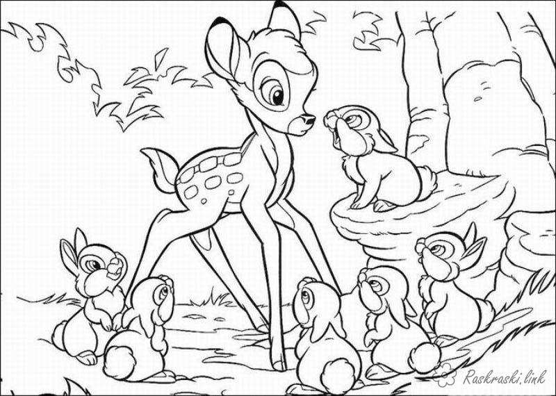 розфарбування оленятко і зайчата. Раскраска розмальовки для дітей, оленятко, зайчата, ліс завантажити бесплатно онлайн