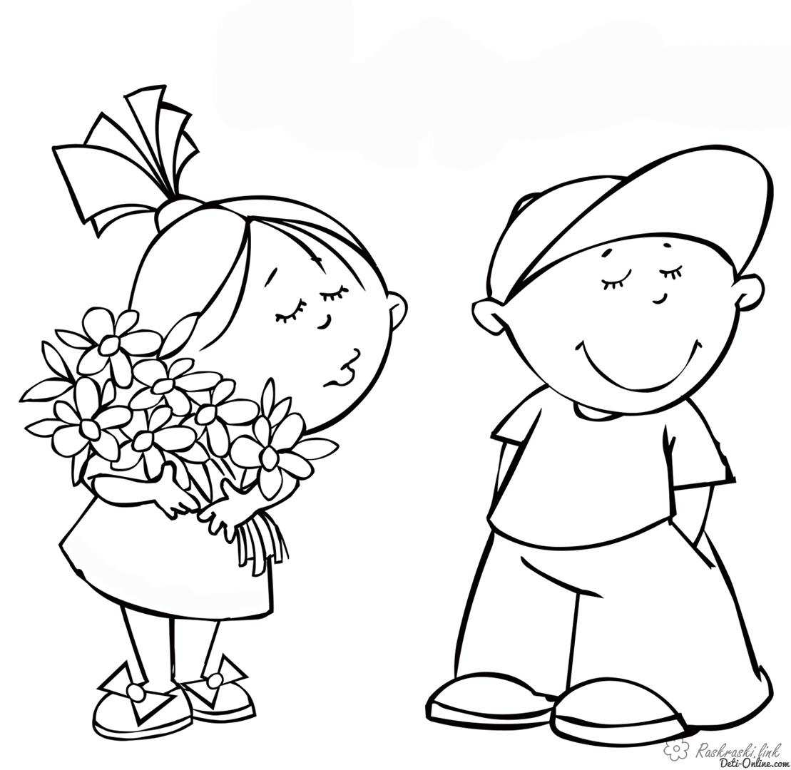 Діти. Раскраска Свято 1 червня День захисту дітей діти квіти дівчинка хлопчик гра літо завантажити бесплатно онлайн