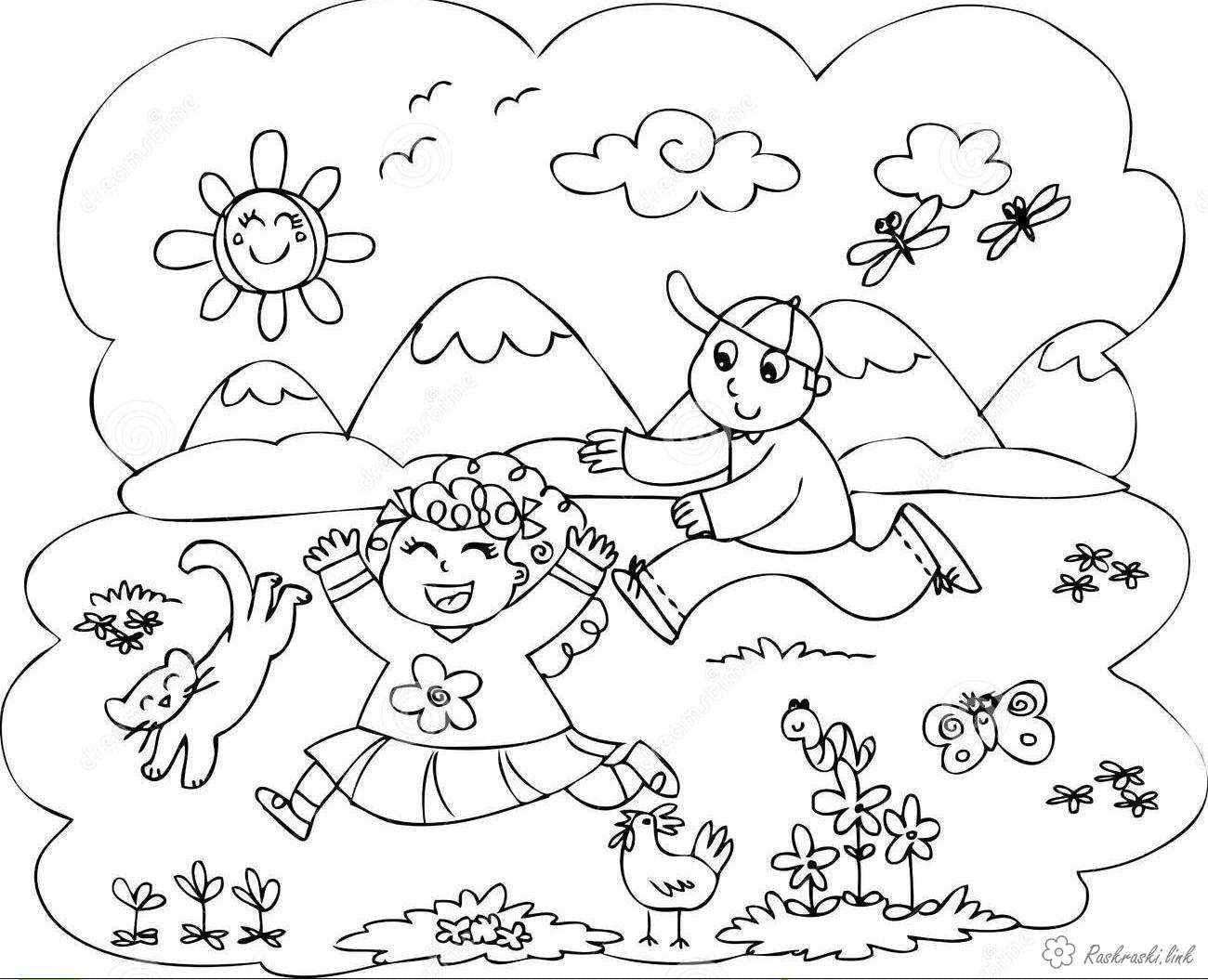 Салочки. Раскраска Свято 1 червня День захисту дітей діти хлопчик дівчинка гра салочки літо завантажити бесплатно онлайн