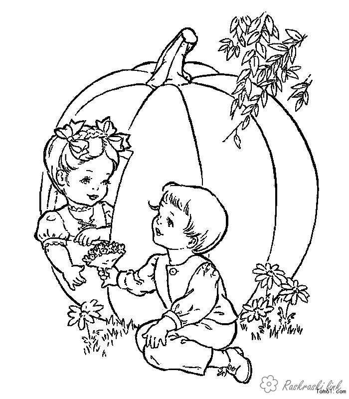 розфарбування літо діти. Раскраска розфарбування літо гарбуз хлопчик дівчинка квіти завантажити бесплатно онлайн