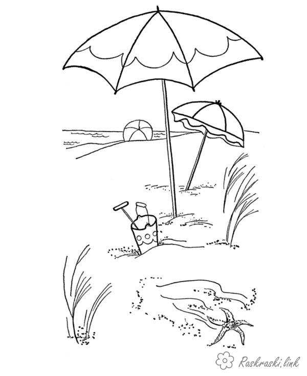 розфарбування літо пляж. Раскраска розфарбування літо пляж парасольку м'яч морська зірка завантажити бесплатно онлайн