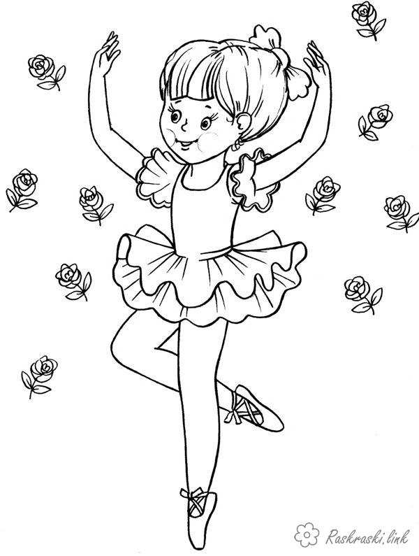 маленька балерина. Раскраска Дівчаткам, дівчинка, плаття, балерина, танець, виступ, квіти завантажити бесплатно онлайн