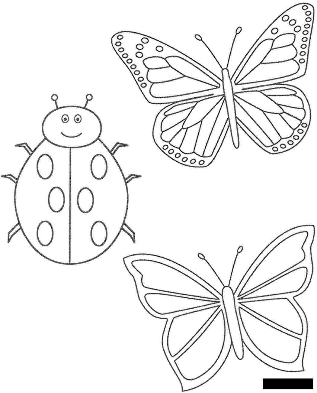 Божа корівка і два метелики. Раскраска дитячі розмальовки, розмальовки для самих маленьких, комахи, метелик, гусінь завантажити бесплатно онлайн