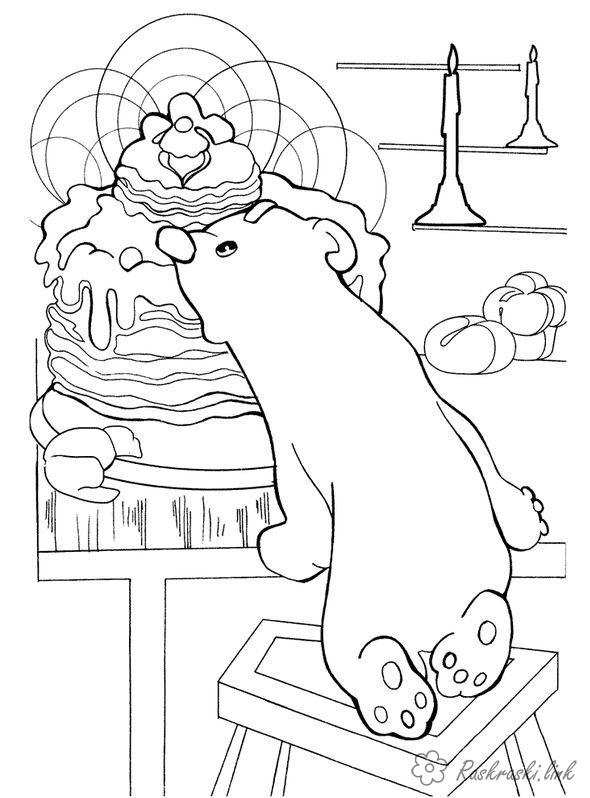 Умка. Раскраска Радянський мультфільм, умка, торт, будинок завантажити бесплатно онлайн