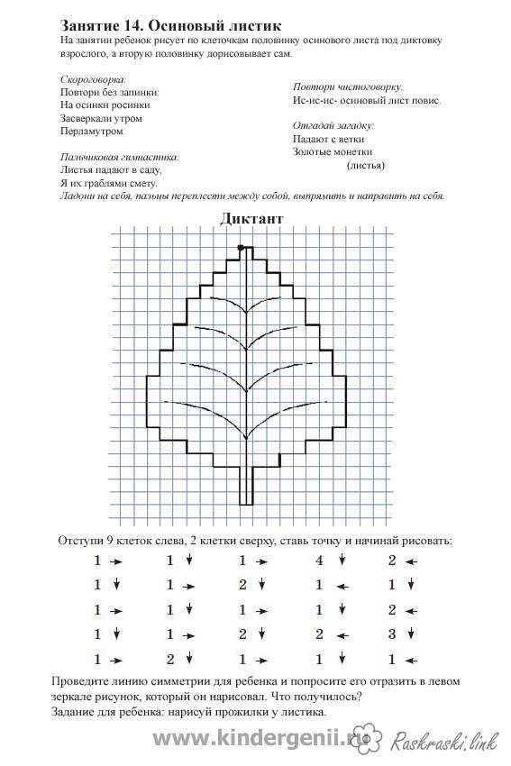 Графічний диктант "Осиковий листик". Раскраска Графічний диктант, малюємо по клітинках осиковий лист завантажити бесплатно онлайн