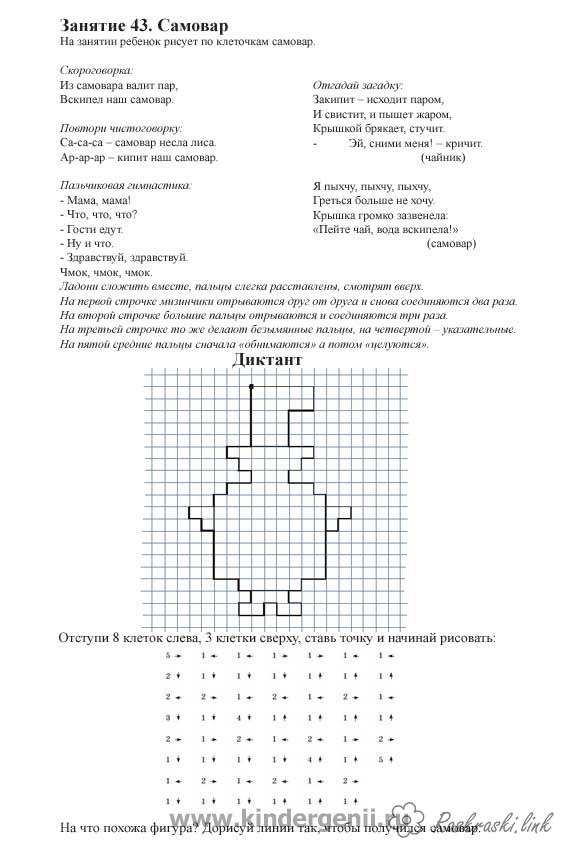 Графічний диктант "Самовар". Раскраска Графічний диктант, малюємо по клітинках самовар завантажити бесплатно онлайн