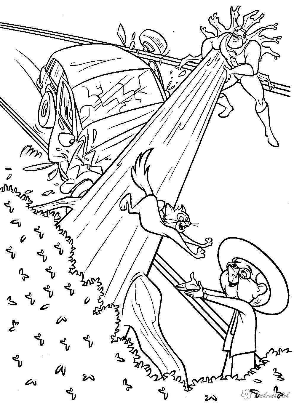 Боб і дерево, що впало. Раскраска Боб, суперсімейка, бабуся, дерево, машина завантажити бесплатно онлайн