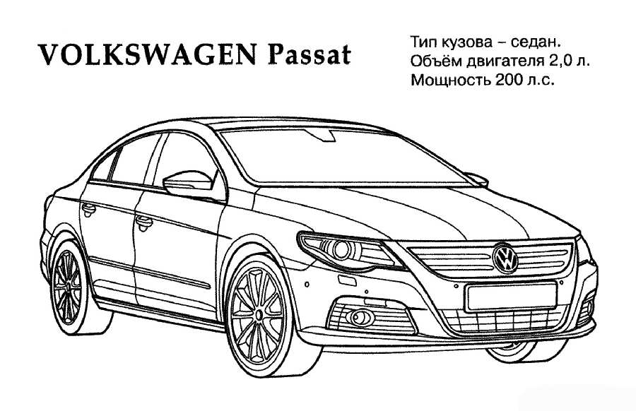 Volkswagen Passat S. Раскраска Volkswagen Passat S машина розмальовки завантажити бесплатно онлайн