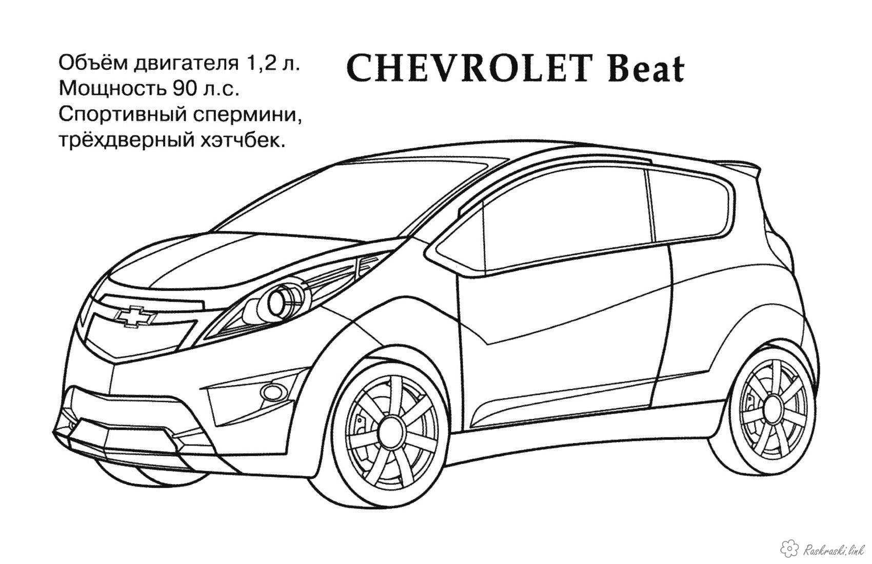 Chevrolet Удар. Раскраска Chevrolet Beat розфарбування для хлопчиків машини завантажити бесплатно онлайн