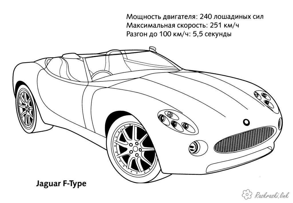 Jaguar F-Type. Раскраска Jaguar F-Type розмальовки машини завантажити бесплатно онлайн